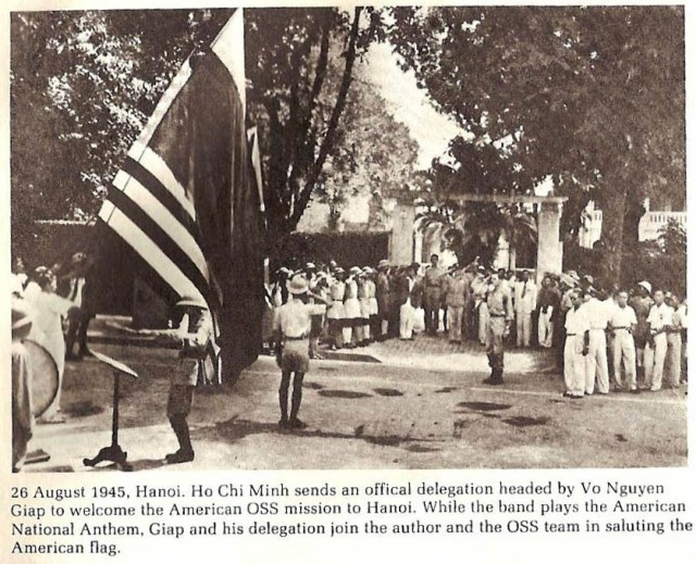 Ở đây vĩ nhân mà cộng sản đề cập tới là phái bộ Mỹ OSS (Office of Strategic Services) dẫn đầu là thiếu tá Archimedes Patti (Một sỹ quan tình báo đã từng hỗ trợ Hồ Chí Minh). Hồ Chí Minh và tập đoàn cộng sản cướp chính quyền Trần Trọng Kim ngày 19/8/1945, sau lúc Nhật bị hai trái bom nguyên tử của Mỹ bỏ tại Hiroshima và Nagasaki. Như bản tin trên, Việt Minh đang thành lập “chính phủ lâm thời.” Trước khi tuyên bố chính phủ một cách chính thức, phái đoàn Việt Minh vận động ráo riết để tìm phe ủng hộ. Không ai hơn là Mỹ. Thế nên, ngày 25/8/1945, trên các làn sóng, báo chí Việt Minh kêu gọi thúc giục dân ra đường ngày hôm sau, 26/8/1945, để nghênh tiếp phái bộ Mỹ OSS cùng phái đoàn Việt Minh. Chính phủ không do dân bầu ra thì ít nhất cũng phái có một quốc gia nào khác công nhận. Nếu không thì, không hơn không kém, cũng giống như một đảng cướp từ trong rừng ra thành dùng vũ lực cướp bóc rồi tự thành lập chính phủ cho mình. Do vậy mà “tình thế gay go nghiêm trọng rất có thể xảy ra” như lời Võ Nguyên Giáp nói. Điều này cho thấy tính bất chính của chính quyền do Hồ Chí Minh đứng đầu muốn lợi dụng Mỹ để công nhận sự hợp pháp cho hành động cướp chính quyền của ông Trần Trọng Kim.