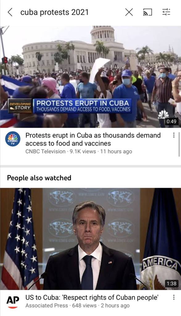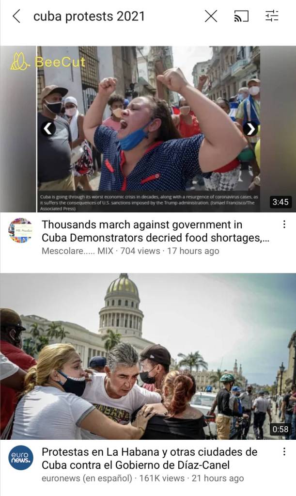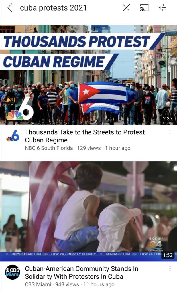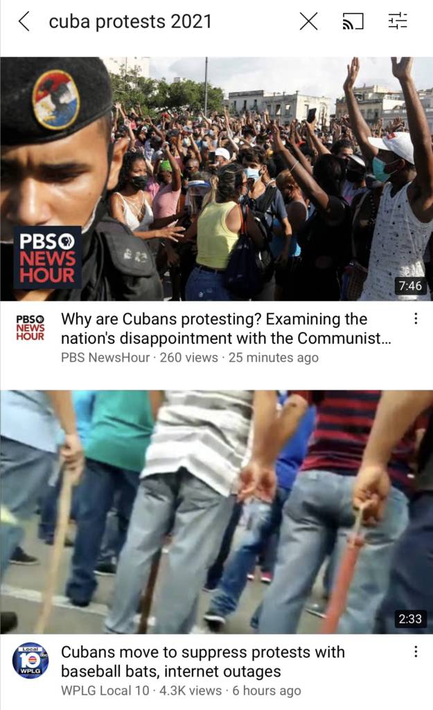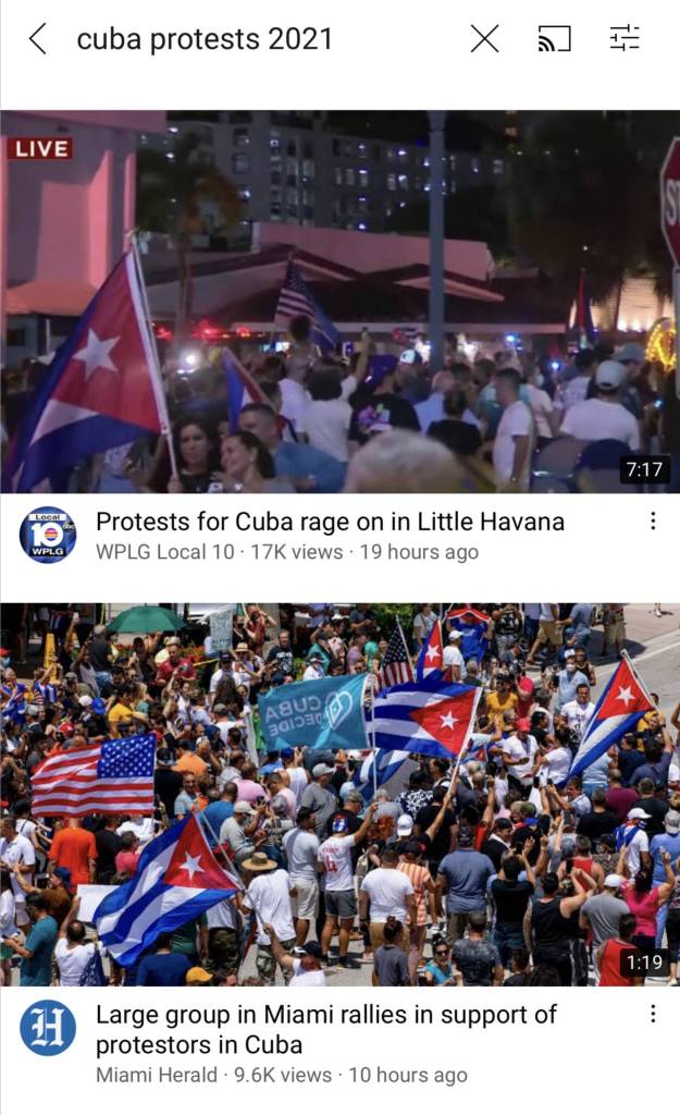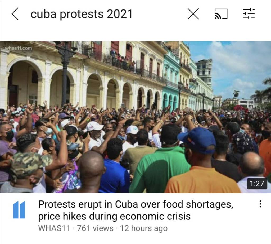 So với những lần xuống đường những thập niên qua, kỳ này, ngày 11/7/2021, người dân Cuban có cuộc biểu dương lực lượng rất quy mô, bao gồm nhiều địa điểm. Các khẩu hiệu: Tự Do, Dân Chủ, Chúng Tôi Không Còn Sợ Nữa…Nhiều đài truyền hình, Youtube, Facebook, báo chí thế giới đưa tin lên rần rộ liên tiếp.