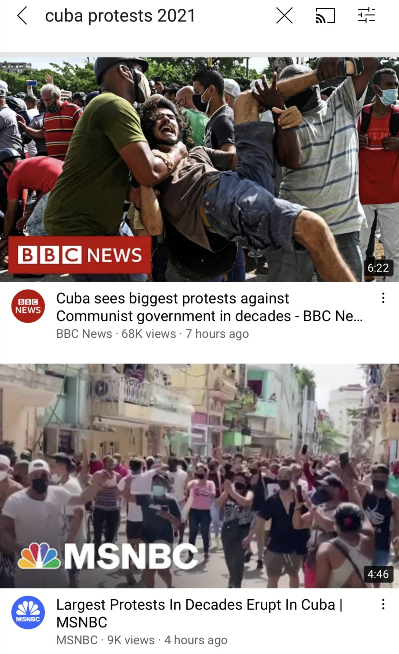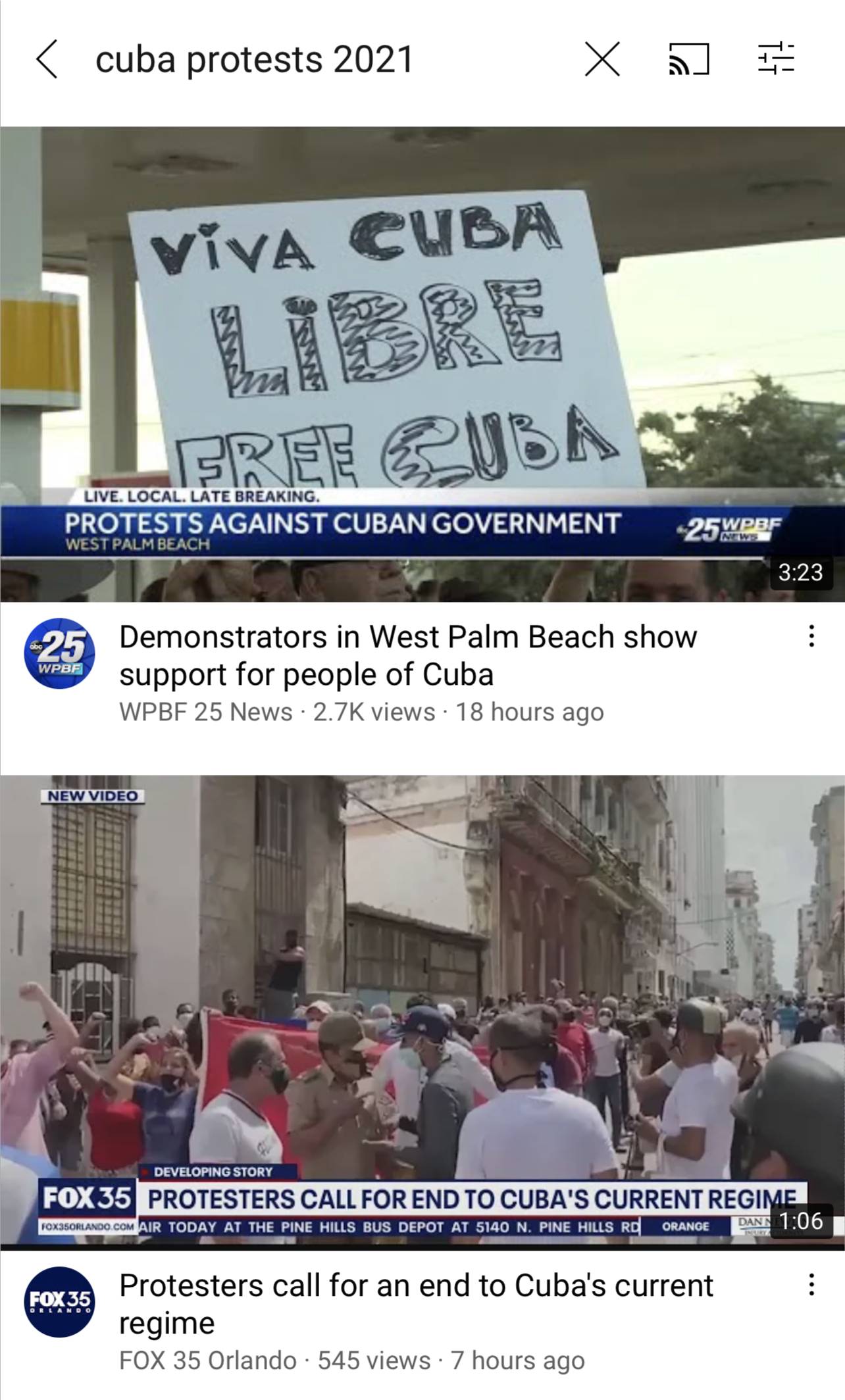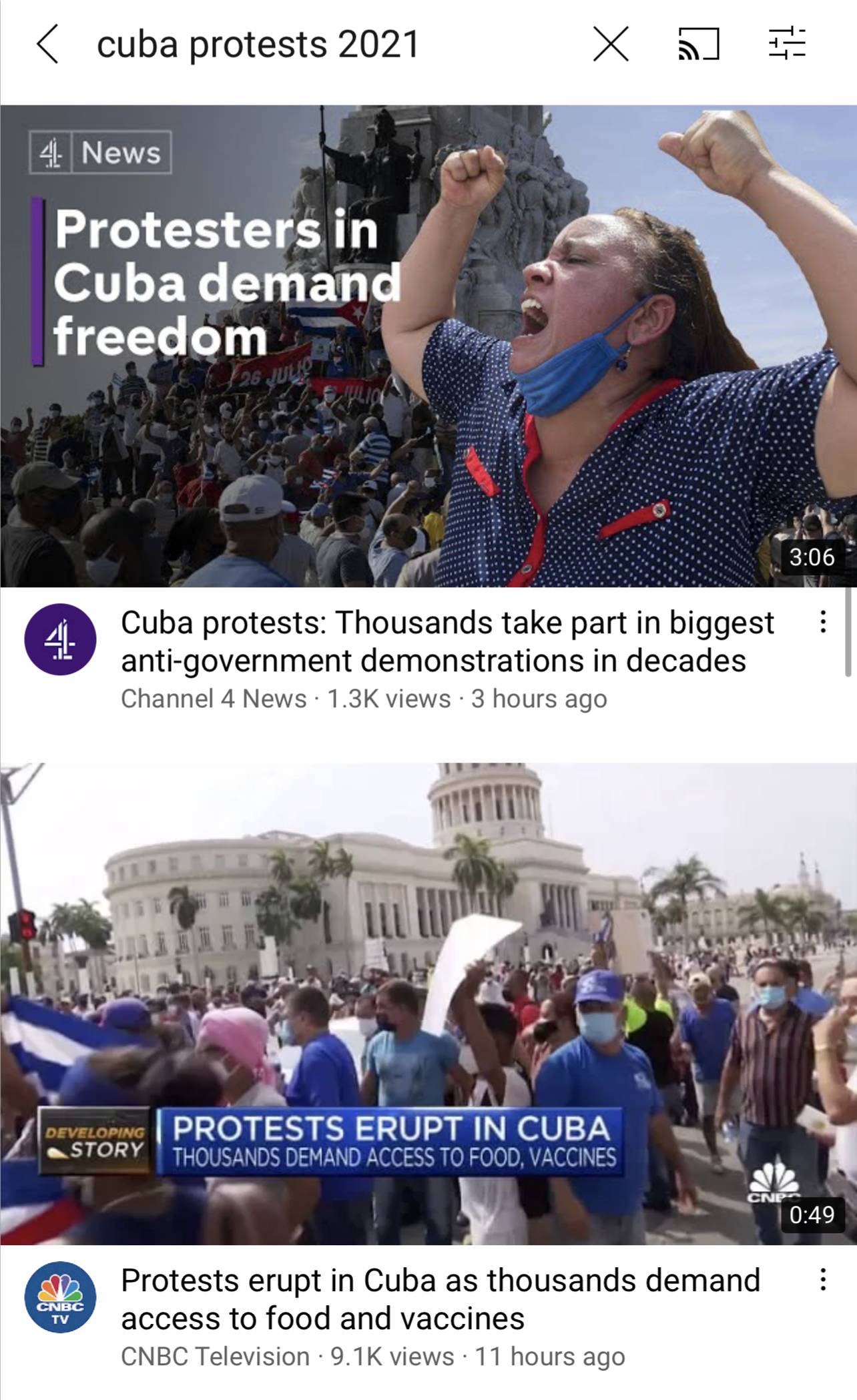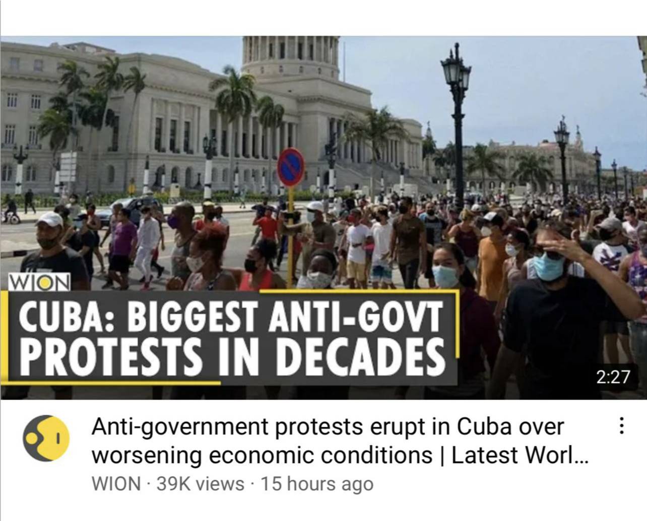 So với những lần xuống đường những thập niên qua, kỳ này, ngày 11/7/2021, người dân Cuban có cuộc biểu dương lực lượng rất quy mô, bao gồm nhiều địa điểm. Các khẩu hiệu: Tự Do, Dân Chủ, Chúng Tôi Không Còn Sợ Nữa…Nhiều đài truyền hình, Youtube, Facebook, báo chí thế giới đưa tin lên rần rộ liên tiếp.