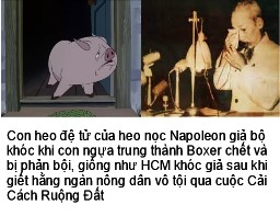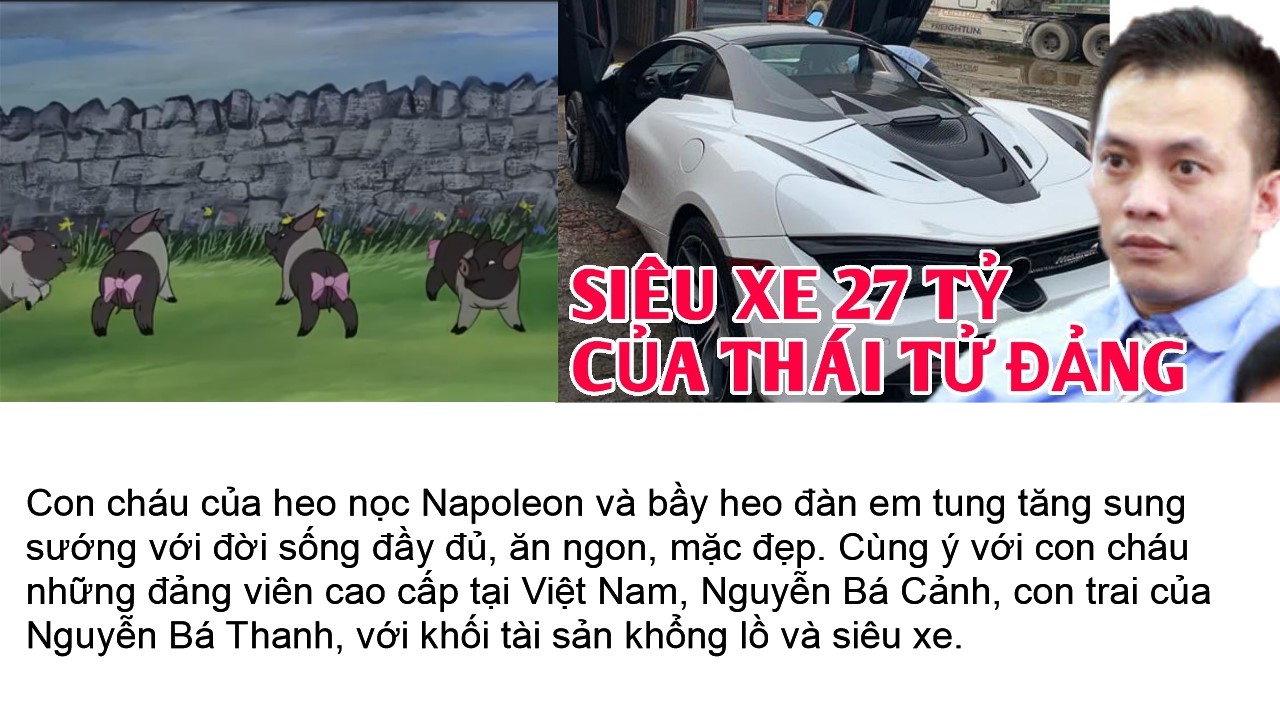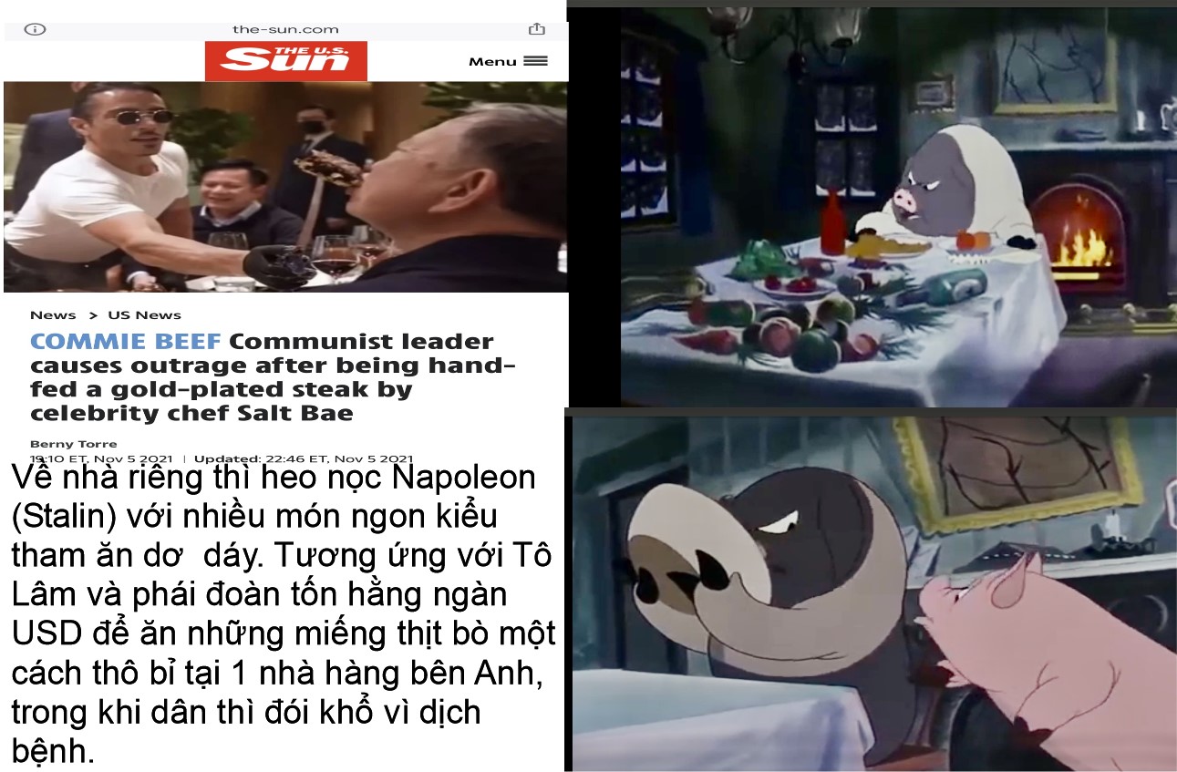Những con heo nọc nổi tiếng trong chuyện ngụ ý Trại Thú Vật (Animal Farm) của nhà văn người Anh, George Orwell, ra đời vào tháng 8, 1945, vừa khi thế chiến thứ hai kết thúc. Những ẩn ý trong câu chuyện trại thú và từng vai trò của mỗi con vật thể hiện ngoài đời những nhân vật trong xã hội của Đảng Cộng Sản Đệ Tam do Stalin lãnh đạo. Nhiều chục năm sau, cuốn tiểu thuyết lịch sử này chứng minh thêm những tiên đoán của tác giả về bản chất người cộng sản cùng hậu quả. Mới đây, nhìn hiện tượng xảy ra tại nước Anh là ông Tô Lâm ăn uống tại một nhà hàng đắc tiền làm tôi tưởng ngay đến mấy con heo nọc Napoleon (Stalin) và Squealer (Molotov).