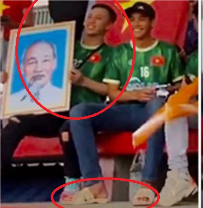 Những “cổ động viên” mang hình Hồ Chí Minh (HCM) hô la cổ võ ngay buổi chơi đá banh tại Campuchia mang ý nghĩa gì? Vừa chơi thể thao lại vừa tuyên truyền cho chế độ, và hành động này chắc chắn phải đi ra từ các ban ngành chỉ thị cho đám thanh niên có nhiều năm bị tẩy não nặng nề – một tên tội ác HCM với bàn tay đầy máu đỏ thành một lãnh tụ yêu nước. Lý thuyết của chế độ cộng sản đã không còn hiệu nghiệm thì dùng hình tượng để áp đặt vào mắt vào tai của thiên hạ, bởi nói láo mãi thì một ngày nào đó cũng có người tin là thật.