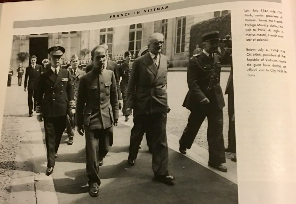 Hồ cho là “nước Pháp mới” cũng không sai. Pháp này là Pháp chống cộng sản, là Pháp phe đồng minh (Mỹ, Anh, Pháp). Pháp này cùng đồng minh đã thắng Thế Chiến 2 và đang đương đầu với sự bành trướng của chủ nghĩa cộng sản nơi nơi. Lần này có vài câu Hồ viết đúng, họ “không phải đế quốc, không áp bức“, họ đã trả hầu hết các thuộc địa. Còn Pháp của giai đoạn 1940-1945 là Pháp Vicky hay Pháp Fascist mà Thống Đốc Decoux lãnh đạo tại Đông Dương. Khi Pháp đồng minh thắng trận và đang hướng về Đông Dương thì Nhật lật đật đảo chánh Pháp Vicky, kẻ cùng phe với Nhật, để thực hiện “Đại Đông Á”. Pháp đồng minh luận tội Decoux là theo Đức quốc phản bội nước Pháp, ông ta bị đem ra tòa xử tội, nhưng cũng không nặng nề. Một tài liệu của sách cộng sản có nêu việc Charles de Gaulle có “đi đêm” với Decoux, khi đồng minh tới Saigon theo thỏa thuận của Hội Nghị Potsdam, để giải quyết một số vấn đề. Sau đó Nhật bị hai trái bom nguyên tử, rồi HCM lợi dụng thời cơ cướp chính phủ Trần Trọng Kim.