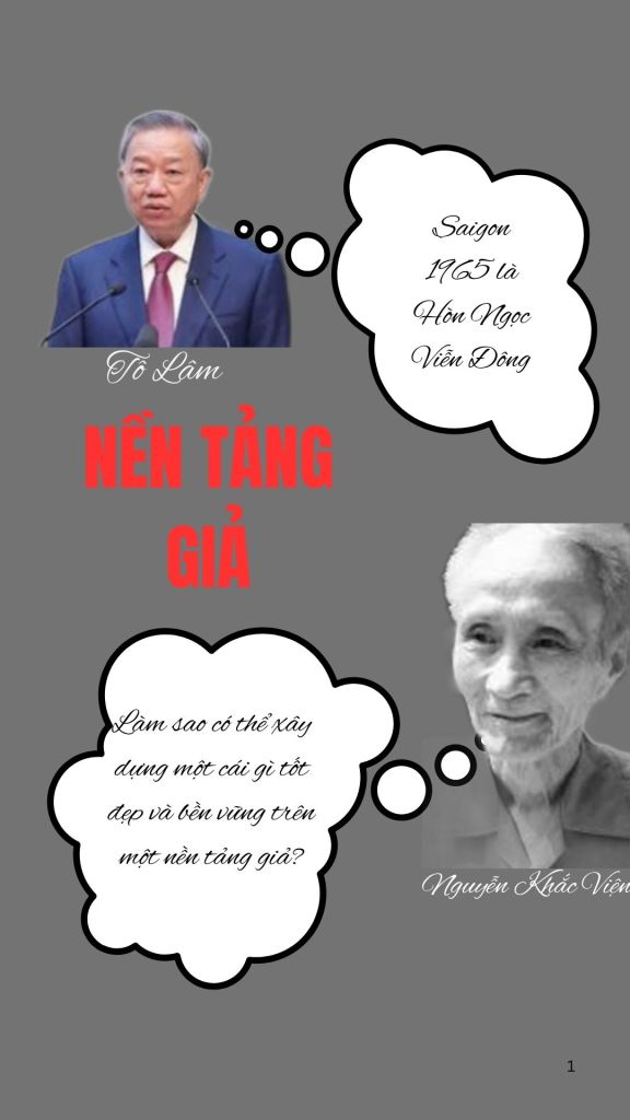 Ngày nay, 2025 rồi, Tô Lâm cũng sống hai mặt, không dám nói ra sự thật. Ông ta phát biểu lung tung, mà điều cốt lõi để đạt mục đích “kỷ nguyên mới” của ông ta là phải xóa bỏ cơ chế độc đảng độc tài thì ông không hề đề cập tới. Ông ta khen Saigon vào 1965 là Hòn Ngọc Viễn Đông, trong khi lúc đó Singapore chỉ là một làng chài.